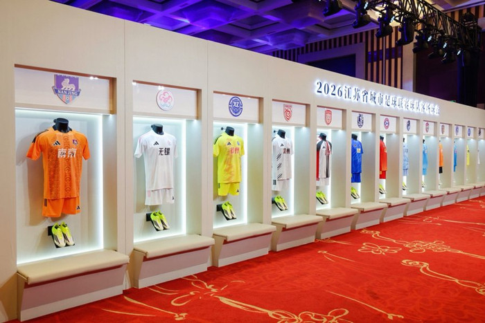3月31日,2026年江苏省城市足球联赛(简称“苏超”)新赛季球衣发布会在江苏省南京市举行。发布会上,由阿迪达斯上海创意中心专属设计团队倾力设计,并与球队所属各地相关部门、各队深度共创的新赛季苏超十三队主客场比赛服正式亮相。球迷助威服及与2026年世界杯同款的联赛官方比赛用球同步揭晓。